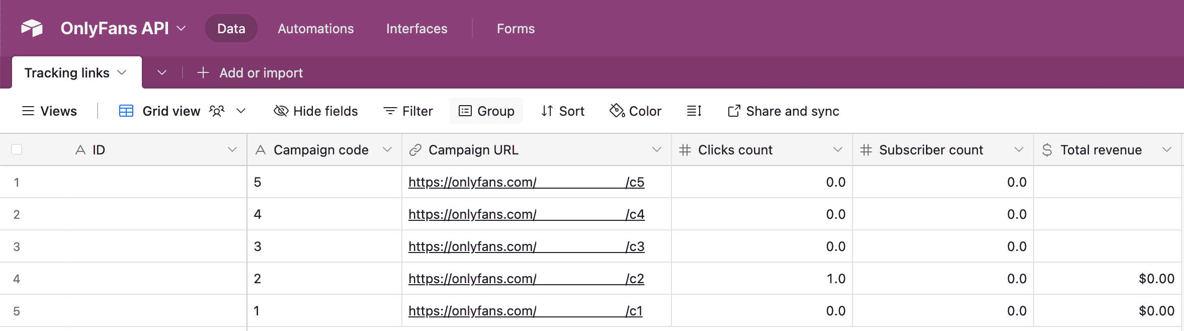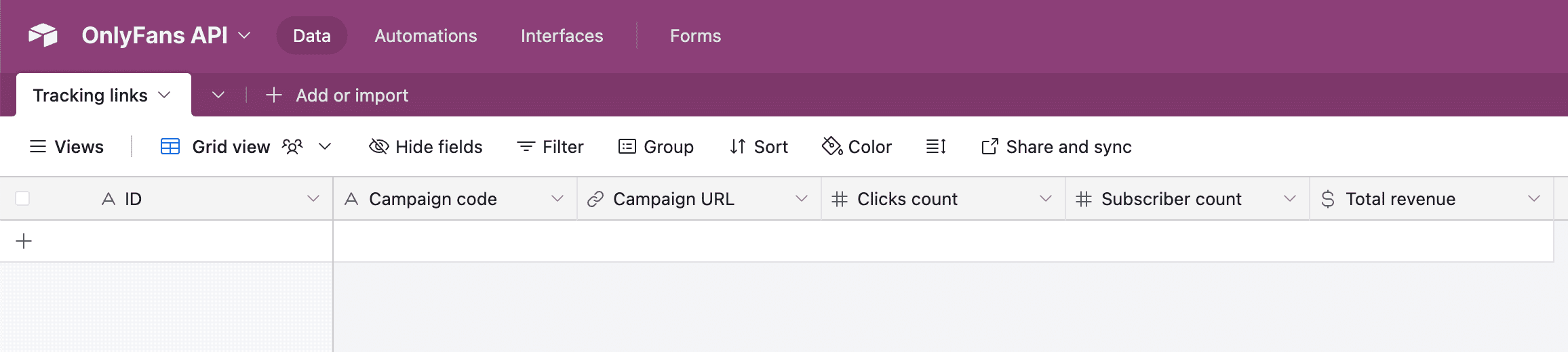 Learn how to easily synchronize Tracking Link Data from your OnlyFans accounts to Airtable.