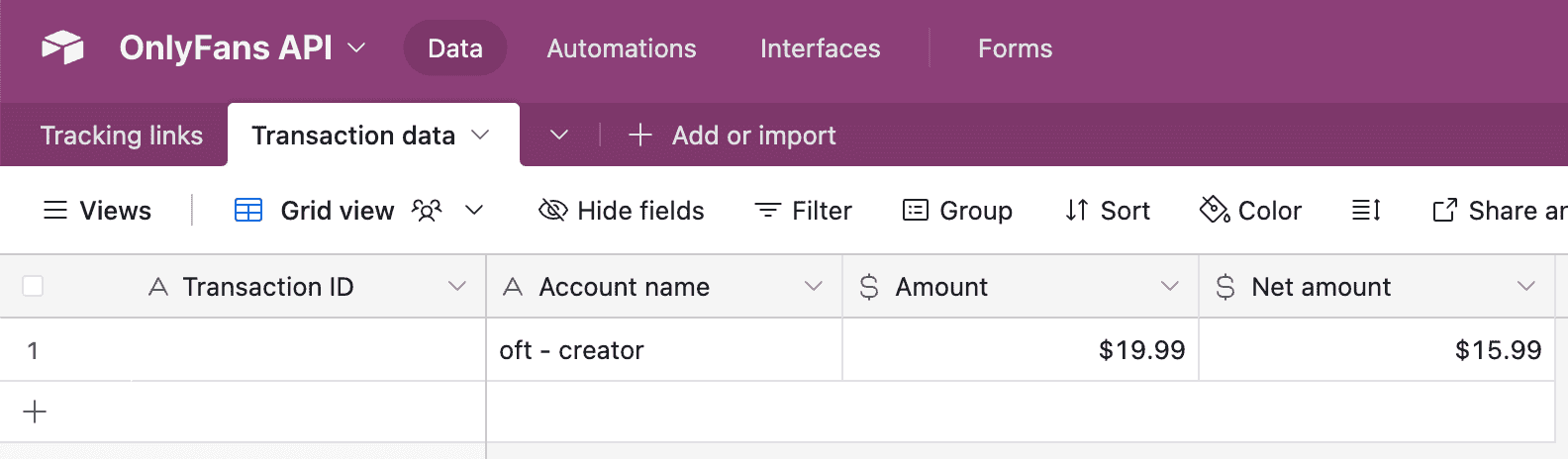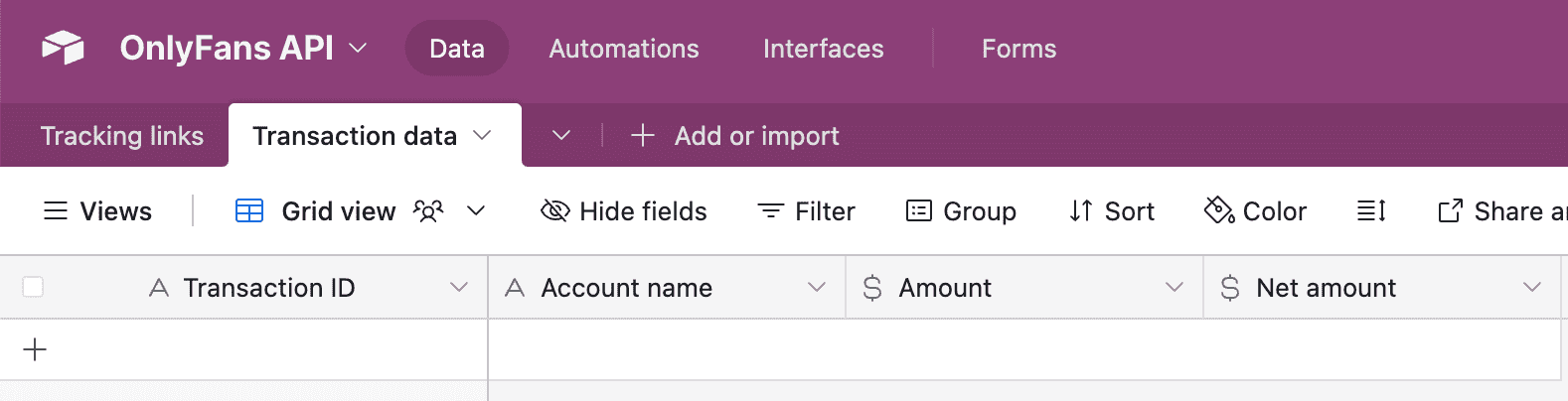 Learn how to easily synchronize Transaction Data from your OnlyFans accounts to Airtable.